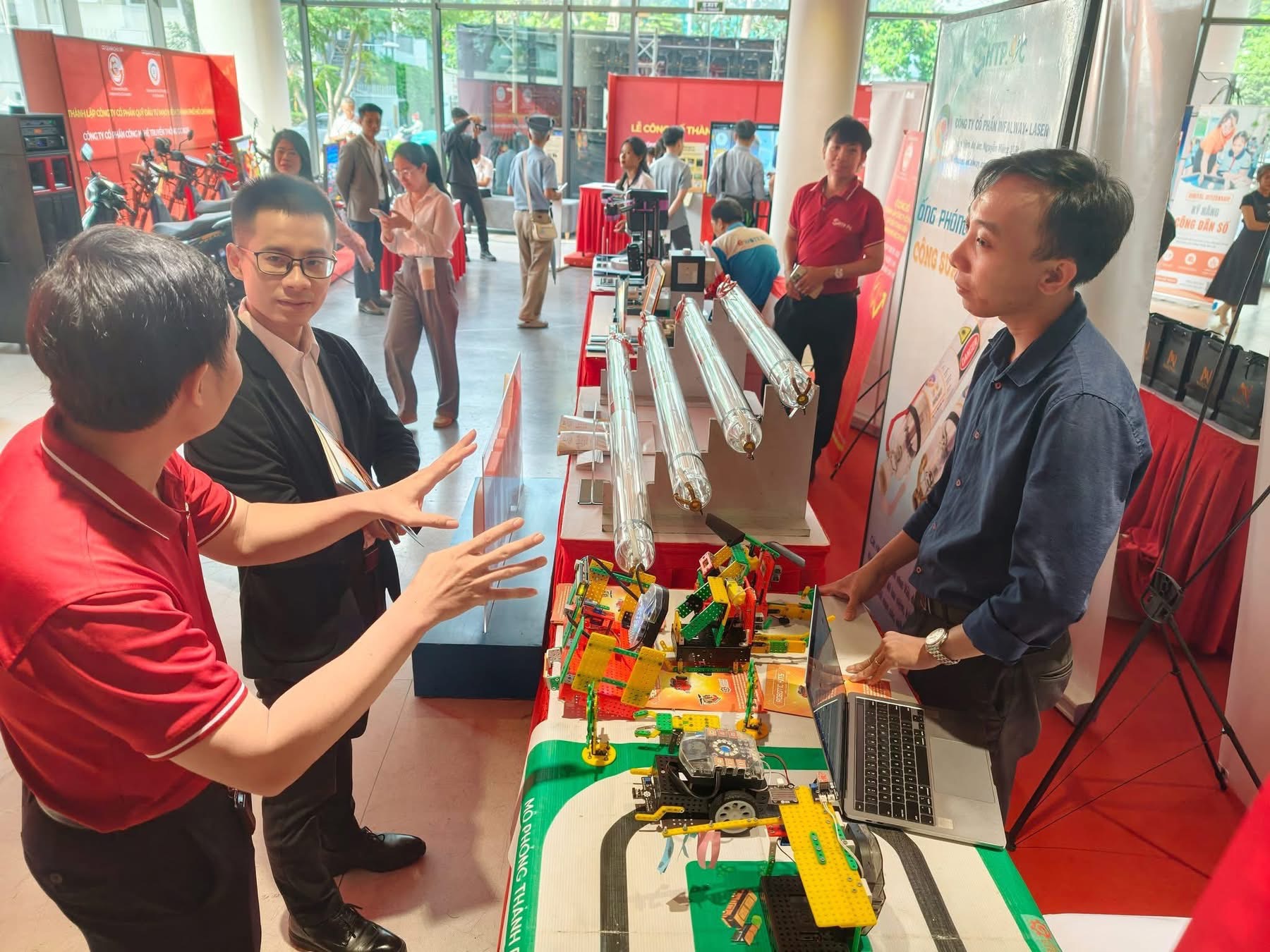 Bí thư Thành ủy TPHCM Trần Lưu Quang cùng lãnh đạo TPHCM tham quan các gian hàng công nghệ được triển lãm tại lễ ra mắt.